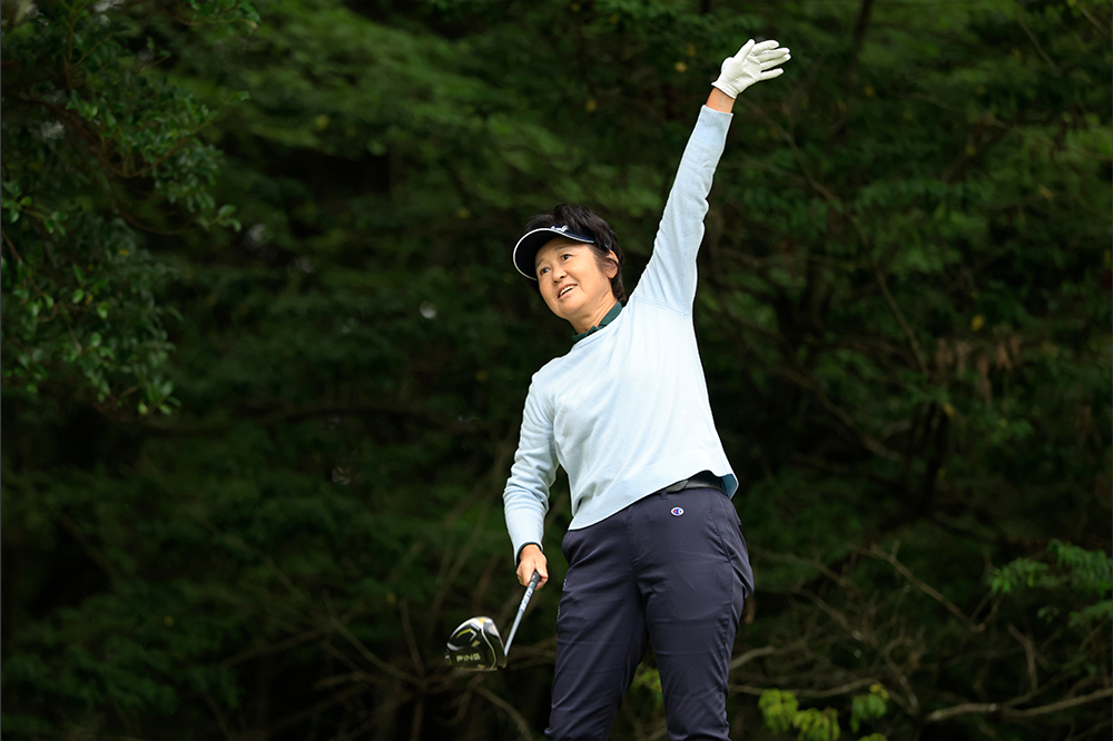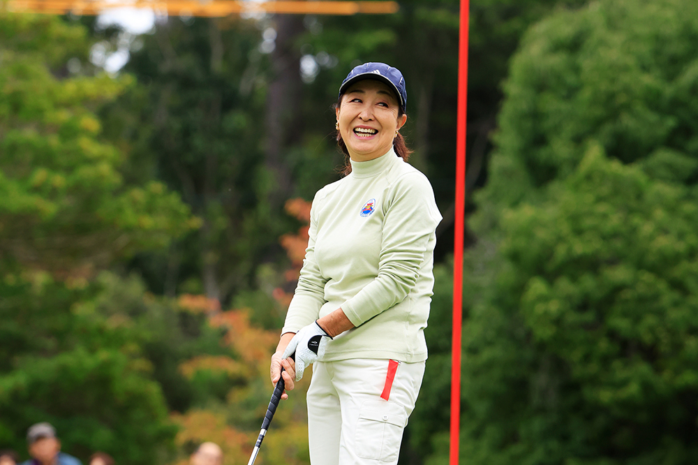 一方、満60歳以上のグランドシニアの部では、二階堂美加が通算5アンダーで2試合連続優勝。難コースが試練を与える一方で、